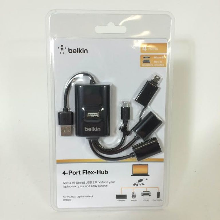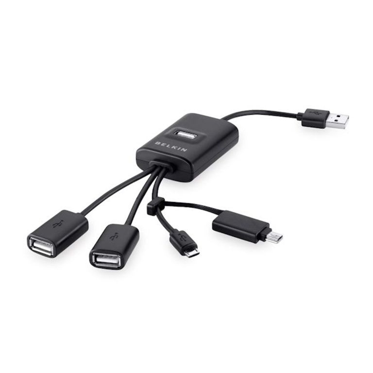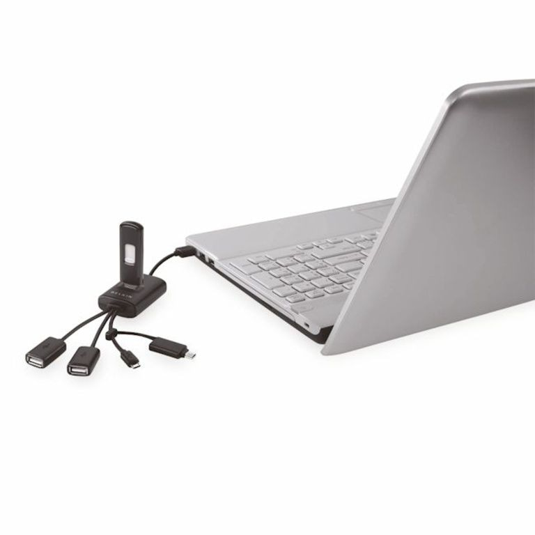 Belkins Fleksibel USB-hub 'Calamari «tilføjer fem USB-porte til din computer; tre standard USB-porte, en mini USB-port og en mikro-USB-stik.