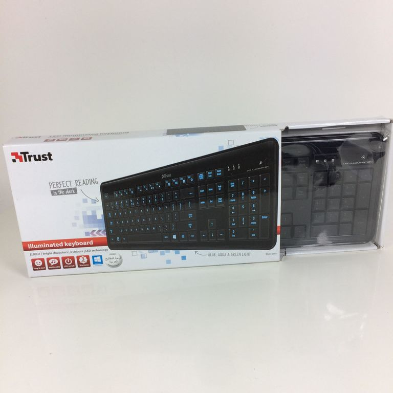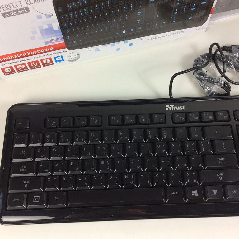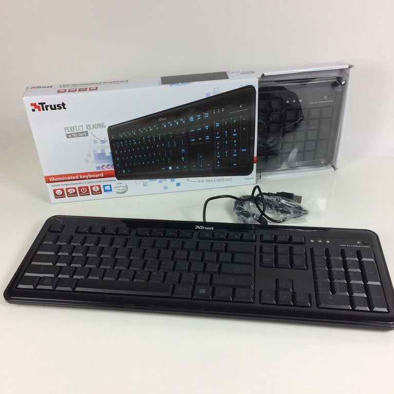 Tastatur med lyse, LED-belyst tegnene på tasterne, letlæselige i mørke