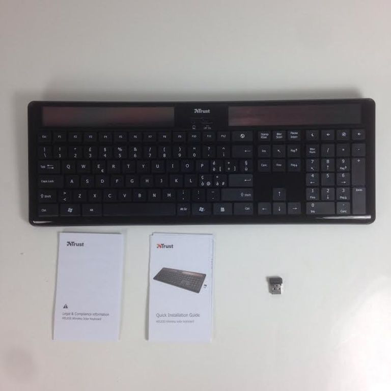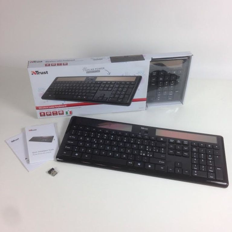 Trådløst tastatur med solceller; Opladning sker ved sollys eller dagslys, så ingen batterier kræves